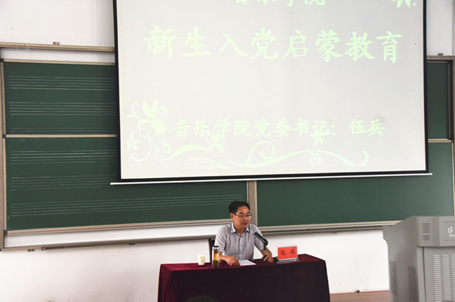 9月8日下午,學(xué)院黨委伍兵書記在音樂樓A1-111為2016新生舉行了一場別開生面的入黨啟蒙教育。