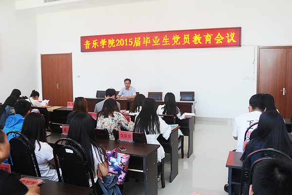 6月5日下午,音樂學(xué)院在學(xué)院會(huì)議室召開2015屆畢業(yè)生黨員教育會(huì)議,學(xué)院黨總支副書記伍兵出席會(huì)議并做重要講話,全體畢業(yè)生黨員參加會(huì)議。