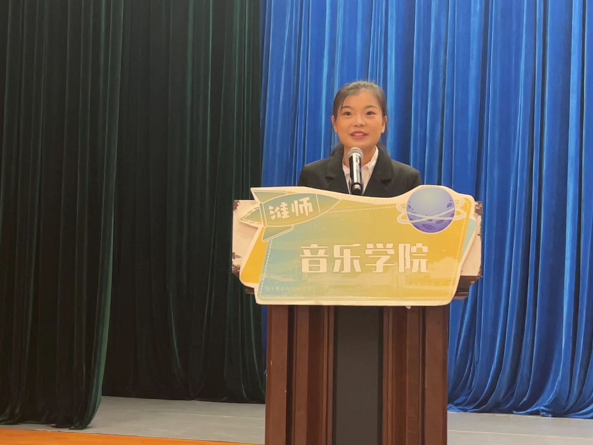 隨后,老生代表王子晗同學(xué)上臺發(fā)言。她結(jié)合自己的學(xué)習(xí)經(jīng)歷,向新生們分享了在音樂學(xué)院成長的點(diǎn)點(diǎn)滴滴。王子晗同學(xué)表示,音樂學(xué)院不僅是一個(gè)學(xué)習(xí)專業(yè)知識的地方,更是一個(gè)鍛煉能力、拓展視野的平臺。她鼓勵(lì)新生們要積極參與學(xué)院的各項(xiàng)活動(dòng),勇于嘗試新事物,不斷提升自己的綜合素質(zhì)。同時(shí),她也提醒新生們要注意保持良好的學(xué)習(xí)和生活習(xí)慣,為未來的音樂之路打下堅(jiān)實(shí)的基礎(chǔ)。