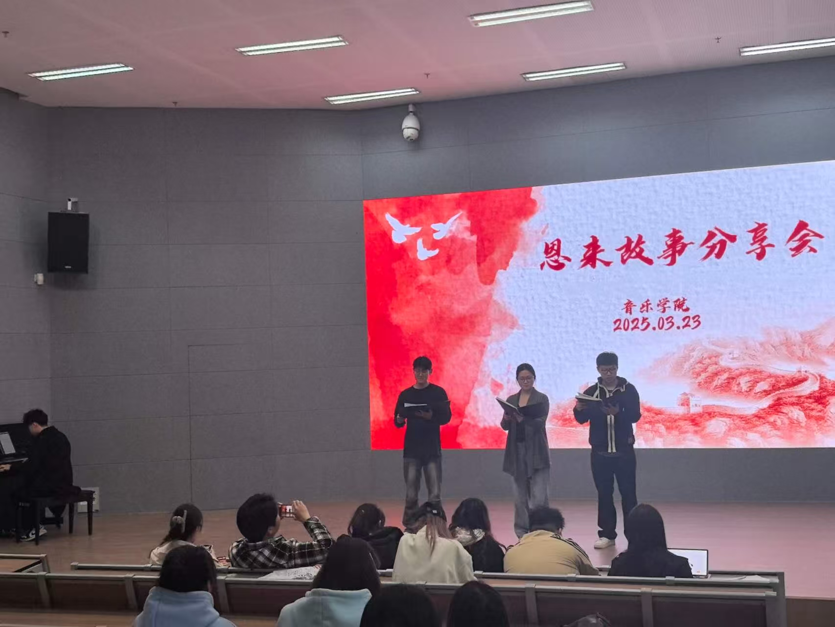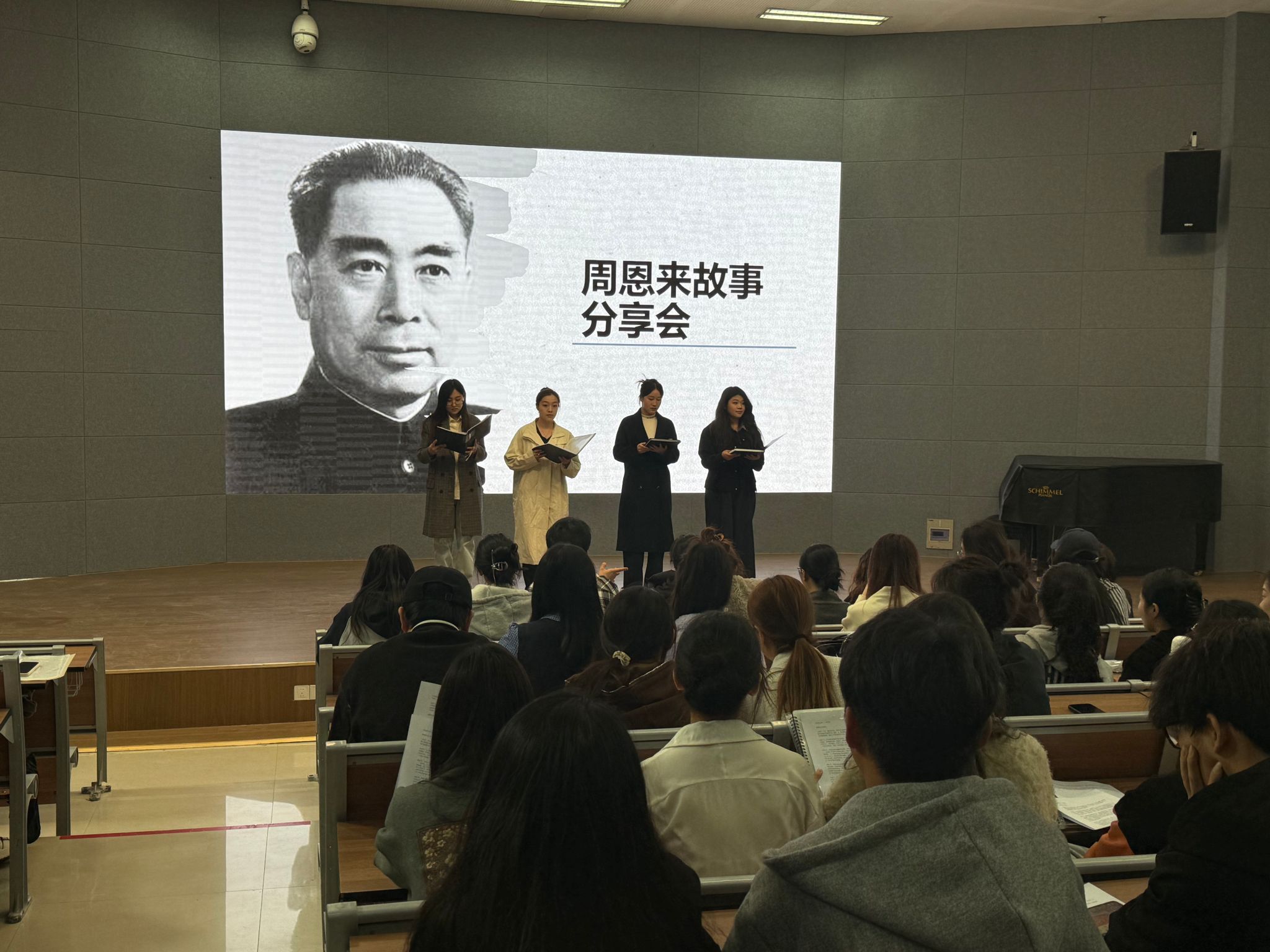 聆聽偉人故事,感悟崇高精神風(fēng)范。為更好地激勵同學(xué)們以周恩來總理為榜樣,傳承并弘揚(yáng)其崇高精神風(fēng)范,2025年3月23日下午,音樂學(xué)院“恩來故事會”于在A1-111教室如期開講。