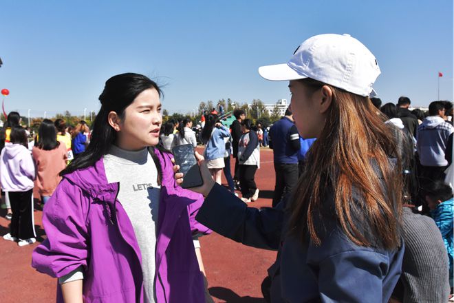 賽場(chǎng)上后勤服務(wù)的同學(xué)不停穿梭在跑道上,他們積極的做著細(xì)致的后勤工作,以下是對(duì)體育部部長(zhǎng)王思宇和學(xué)生會(huì)主席張博隆的采訪。