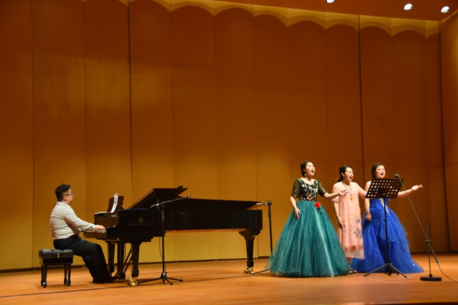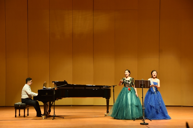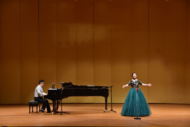6月24日晚六點半,音樂學院沙凌楠、周悅在四樓小劇場舉行個人畢業(yè)獨唱音樂會。在此畢業(yè)來臨之際,兩位優(yōu)秀的畢業(yè)生希望通過這一場音樂會來匯報四年來的聲樂學習成果。兩位同學用漢語、意大利語演唱了不同風格的中外藝術歌曲,也涉及一些中外歌劇作品選段,經(jīng)過重重的篩選和提煉,快歌與慢歌的搭配,博得了觀眾的陣陣掌聲。