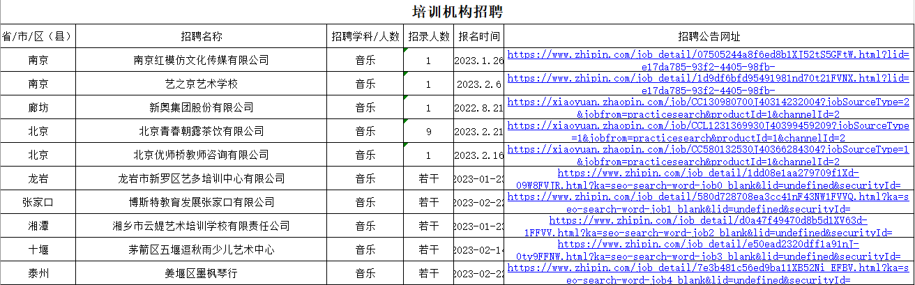 音樂(lè)學(xué)院2023年度就業(yè)信息匯總(第二期)