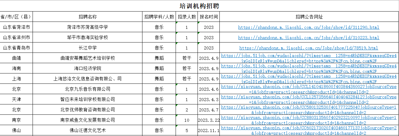 音樂學(xué)院2023年度就業(yè)信息匯總(第九期)