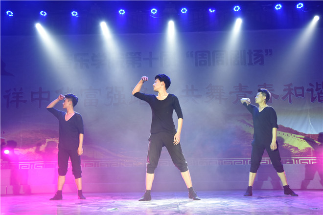 張?jiān)健⑼跣竦热藥砑で槔∥枥_晚會序幕。童梓和楊露露的雙人舞《伊甸園》給我們道出了我們道出亞當(dāng)與夏娃的愛情故事。王旭和劉建濤的《情系草原》把蒙古漢子的豪邁、熱情展現(xiàn)得淋漓極致。女子三人舞《月狐吟》跳出了女子們的嬌羞、嫵媚與俏皮。男子群舞《刀鋒》又給我們視覺上強(qiáng)烈的沖擊,將男子的守紀(jì)陽剛之美展現(xiàn)得淋漓盡致。李美欣和馬君婷的《風(fēng)鳴動》亦是美輪美奐。由田潔、商越紅、王旭和漆前程帶來的四人舞蹈《梅蘭竹菊》訴說出中國古典文化的博大精深,用清新淡雅的情感詮釋“梅蘭竹菊”的傲、幽、澹、逸。男子群舞《戈壁沙丘》體現(xiàn)出演員們較強(qiáng)的專業(yè)功底,讓臺下的觀眾驚嘆不已。苑晨和楊海帶來的舞蹈串燒跳出個性與特點(diǎn),帶動全場氣氛。王旭、黃康、殷奇潮的三人舞《安河橋》體現(xiàn)了演員之間高度的默契與配合。舞蹈《詠蓮》用富有創(chuàng)意元素與嫻熟的舞蹈技藝營造了“舞如蓮、蓮如畫”的舞臺畫面,使“蓮”的高雅品格和清素形象得到完美展現(xiàn)。劉建濤的《孔雀》將孔雀表現(xiàn)得活靈活現(xiàn)、生氣勃勃。最后由商越紅和王旭等人帶來的《細(xì)雨翠竹》把人帶入一種綿綿的意境,全場觀眾都放慢呼吸,靜靜地欣賞幽美的舞蹈,走進(jìn)細(xì)雨翠竹的舞蹈天堂。