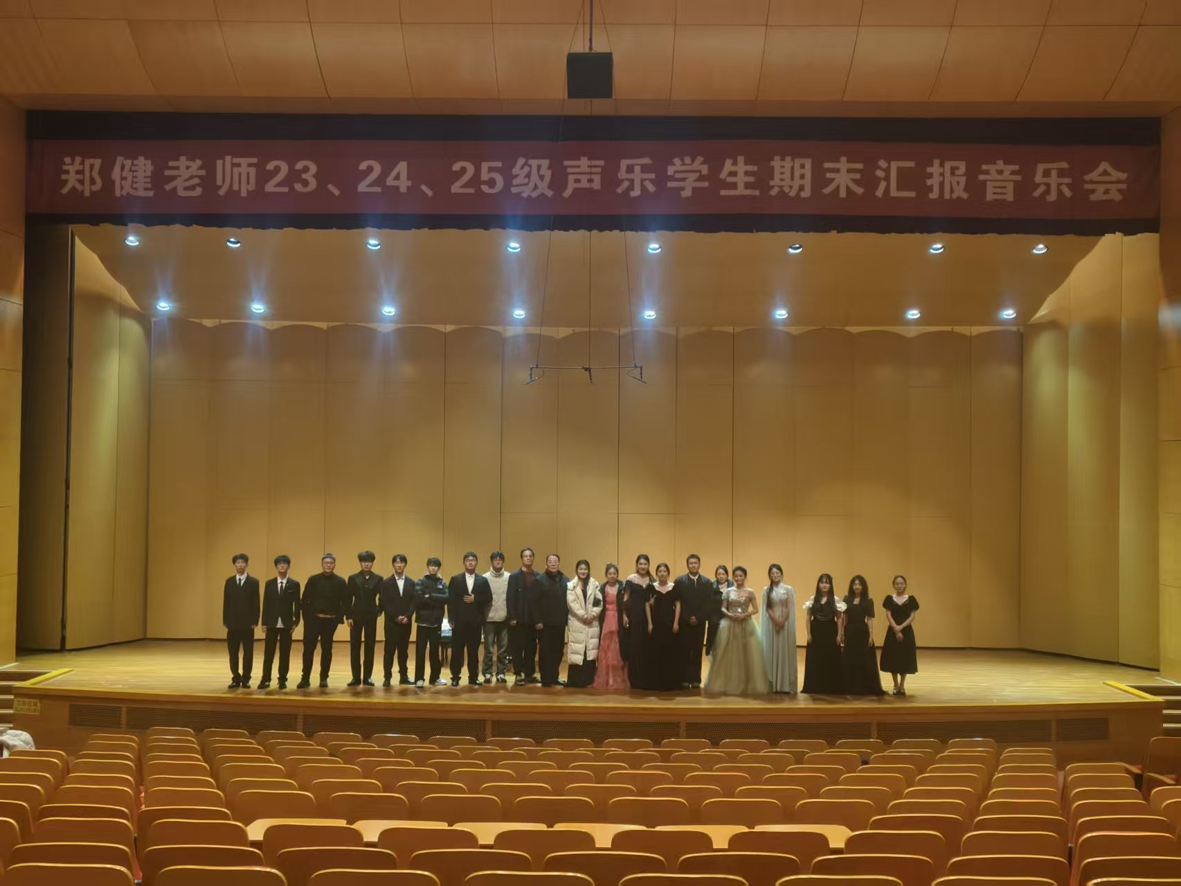 整場音樂會歷時近兩個小時,二十一首曲目各具特色、層層遞進(jìn),既展現(xiàn)了鄭健教授“因材施教、注重內(nèi)涵”的教學(xué)理念,也彰顯了淮師聲樂學(xué)子的綜合藝術(shù)素養(yǎng)。鄭健教授每學(xué)期如期進(jìn)行的期末匯報音樂會既是教學(xué)成果的集中展示,也是學(xué)生藝術(shù)成長的重要階梯,更彰顯了其“以樂育人、以美潤心”的教育理念。