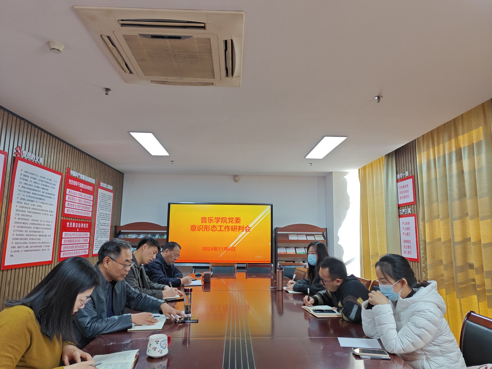 11月6日,音樂學院黨委在學院會議室召開了2024年第四季度意識形態(tài)工作研判會。本次會議由學院黨委書記伍兵主持,全體黨委委員、輔導員、教務員出席會議。
