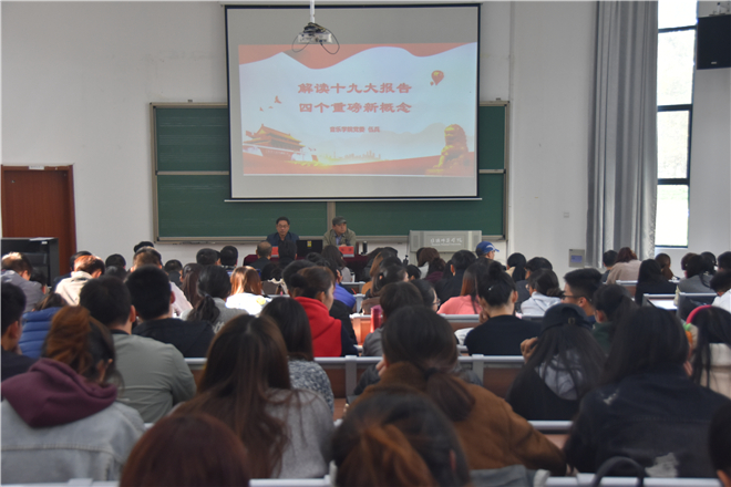 為認(rèn)真學(xué)習(xí)、深刻領(lǐng)會(huì)黨的十九大報(bào)告精神, 11月1日下午,音樂(lè)學(xué)院在階梯教室A1-111開(kāi)展十九大專(zhuān)題報(bào)告會(huì),全體教職工、學(xué)生干部、黨員、發(fā)展對(duì)象和積極分子參加會(huì)議。