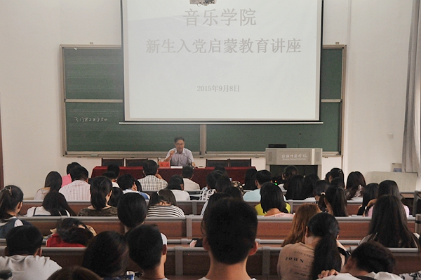 9月8日,為向2015級(jí)新生普及有關(guān)入黨的知識(shí),音樂(lè)學(xué)院在音樂(lè)樓A1-111舉行2015新生入黨啟蒙教育講座。黨委書(shū)記伍兵出席本次講座并擔(dān)任主講人。