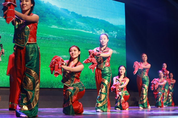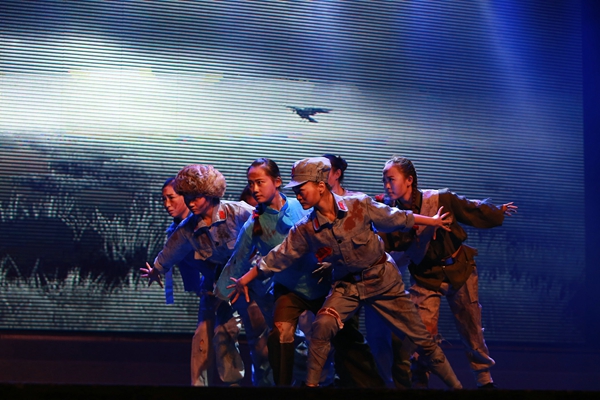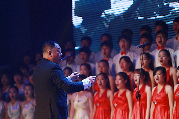 民樂合奏《長城》奏出萬里長城起伏奔騰、飛舞盤旋的氣勢,激動人心的旋律時而激昂,時而低沉,張馳有度,扣人心弦;歌曲《松花江上》、《黃河怨》、《黃河對口曲》向觀眾講述抗日戰(zhàn)爭時期人民流離失所、妻離子散、無家可歸的悲慘生活;舞蹈《八女投江》、《戰(zhàn)旗?劉老莊》展現(xiàn)革命英雄面對日寇誓死不屈、壯烈殉國的英勇事跡,音樂還沒有結束,演員們早已入情入境,淚流滿面,抗日英雄們浴血奮戰(zhàn)、視死如歸的精神,讓現(xiàn)場觀眾忍不住流下淚水;雙鋼琴合奏《保衛(wèi)黃河》傳遞出中華兒女捍衛(wèi)國土的堅定信念和百折不饒的奮進精神;表演唱《畢業(yè)歌》、《五月的鮮花》、《地道戰(zhàn)》唱出各階層愛國人士萬眾一心、共同救國的愛國情懷;詩朗誦《熱血鑄豐碑大愛寫忠魂》誦出革命先烈們英勇頑強、慷慨赴死的愛國之聲,激起觀眾心中的悲憤之情;隨著大合唱《在燦爛陽光下》、《歌唱祖國》,晚會進入尾聲。