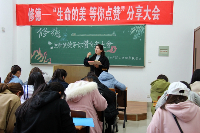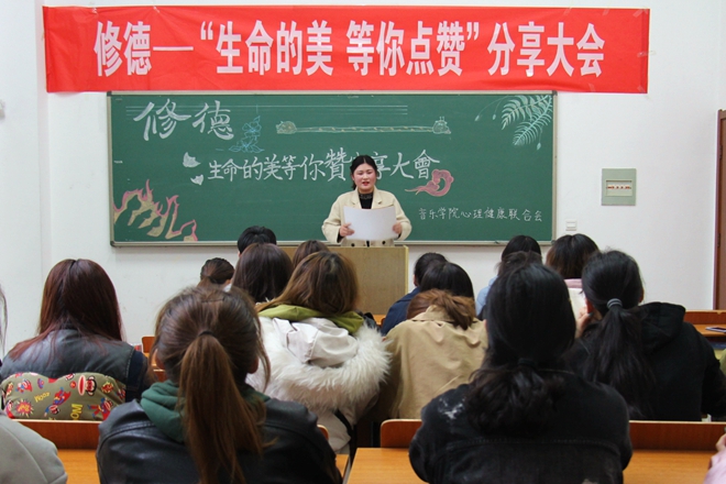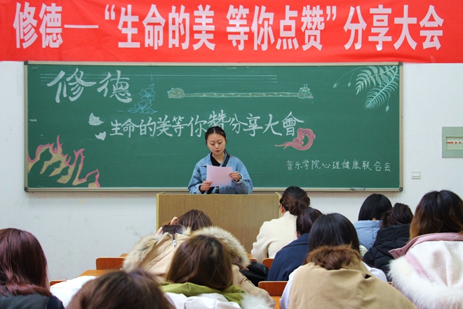 陽春三月,草長(zhǎng)鶯飛,與心靈相約,與健康同行。3月20日下午三點(diǎn),音樂學(xué)院在音樂樓A2-104舉行修德——“生命的美等你點(diǎn)贊”分享大會(huì)。此次大會(huì)由心理健康老師張菁菁主持,心理健康聯(lián)合會(huì)所有成員參加。