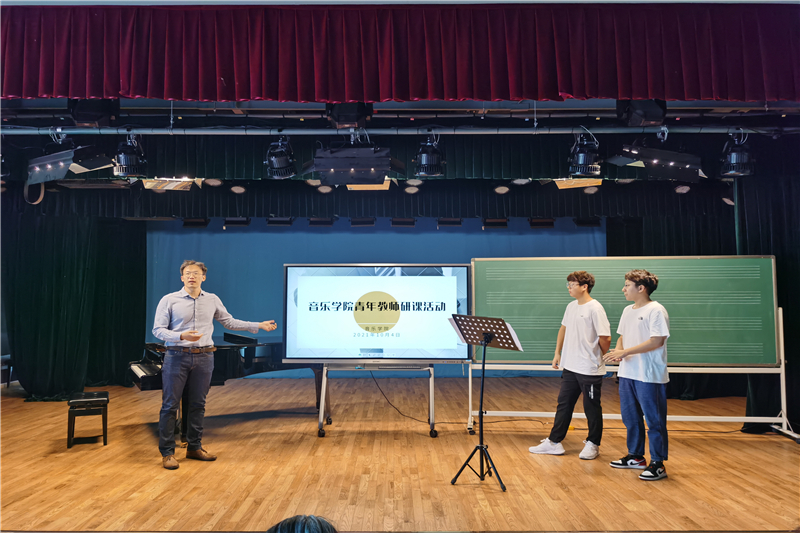 為提升青年教師的專業(yè)水平、夯實(shí)教學(xué)技能、促進(jìn)課堂教學(xué)能力的整體提升。音樂(lè)學(xué)院于10月4日上午在音實(shí)樓實(shí)驗(yàn)劇場(chǎng)開(kāi)展“青年教師研課 ”活動(dòng),學(xué)院領(lǐng)導(dǎo)、系主任參加,并邀請(qǐng)陳旻、陳英兩位老師蒞臨指導(dǎo)。
