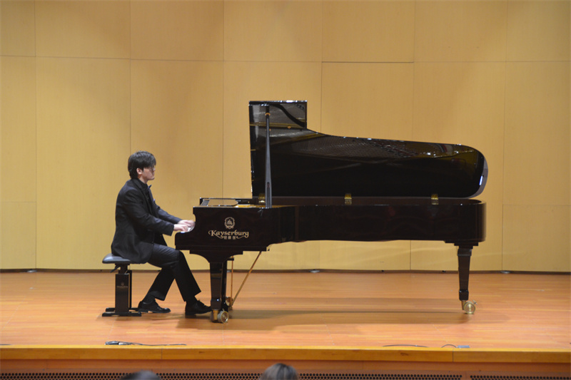 淮師新聞網(wǎng)5月5日電(記者 高慧 王妍婷 )4月28日下午,淮陰師范學(xué)院音樂學(xué)院于音樂廳舉辦第十五屆“珠江鋼琴”獎學(xué)金鋼琴擂臺賽暨頒獎音樂會。廣州珠江愷撒堡鋼琴有限公司和一帆音樂文化有限公司相關(guān)領(lǐng)導(dǎo)、音樂學(xué)院領(lǐng)導(dǎo)老師出席并擔(dān)任擂臺賽評委。音樂學(xué)院師生代表參加活動。