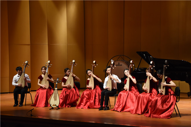 一開場,全體師生共同演奏了一曲琶琵齊奏《十面埋伏》,久遠的聲音從歷史深處隱然傳來,金戈鐵馬,氣勢如虹。形象地再現(xiàn)了漢軍由遠而近、浩浩蕩蕩、氣壯山河的威武軍容。