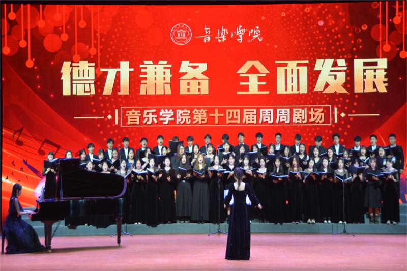 學(xué)院堅(jiān)持弘揚(yáng)中華美育精神,以提高學(xué)生審美和人文素養(yǎng)為目標(biāo),以促進(jìn)學(xué)生全面發(fā)展為主題,以新發(fā)展理念為引領(lǐng),遵循教育規(guī)律和學(xué)生成長(zhǎng)規(guī)律,不斷健全新時(shí)代“德智體美勞”五育并舉、融合育人的教育體系。周周劇場(chǎng)重點(diǎn)培養(yǎng)學(xué)生的舞臺(tái)表現(xiàn)力,堅(jiān)持“人人上舞臺(tái),個(gè)個(gè)展風(fēng)采”,充分展示音樂學(xué)院藝術(shù)教育的豐碩成果。本屆周周劇場(chǎng)既有弘揚(yáng)中華優(yōu)秀傳統(tǒng)文化的《雙頭佛》《北望河山》,也有賡續(xù)紅色基因、致敬革命先烈的《與妻書》《唱支山歌給黨聽》,亦有謳歌新時(shí)代的《領(lǐng)航》《燈火里的中國(guó)》等作品。通過文藝作品傳遞向上向善的價(jià)值觀,積極營(yíng)造健康高雅的校園文化環(huán)境,“用音樂講好中國(guó)故事”。